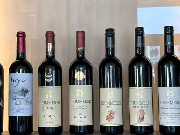 Premier Hotel Miskolcの受付兼バーに置いてあるエゲルのワイン達