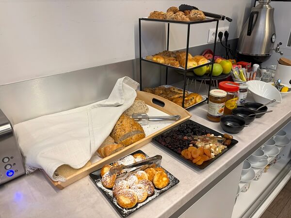 Premier Hotel Miskolcの朝食例:パン各種とドライフルーツ