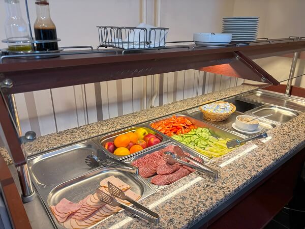 Hotel Minaretの朝食:ハム・きゅうり・トマト・ベルペッパー